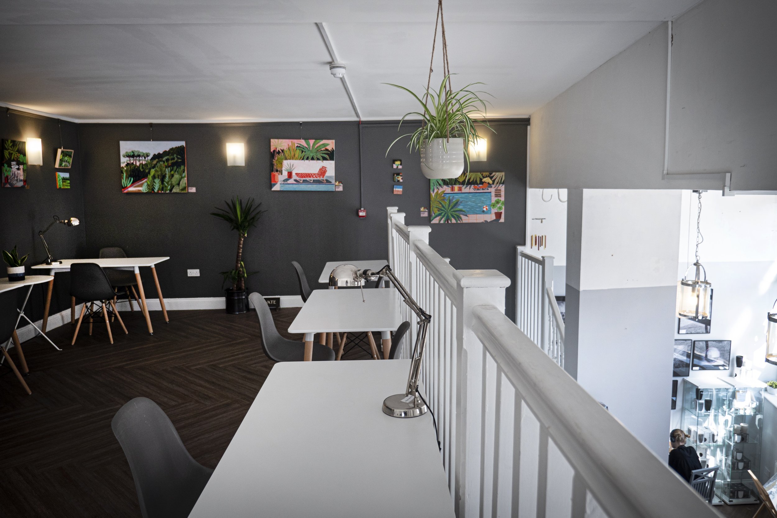 Our co-working space covers 2 floors with 6 desks on our mezzanine and an additional 3 tables in our main space. All desks upstairs have electric points with USB sockets and access to plug sockets downstairs. We charge £7.50 for a 3-hour slot which includes a hot or cold drink of your choice and access to WIFI. You can double up on slots and stay for longer too. Additional hours charged at £2.50 per hour. We have a café on site serving breakfast, lunch, cakes and a wide range of drinks. Pre booking in advance is recommended to secure a slot. Call us on 0208 659 4701 or book via email .